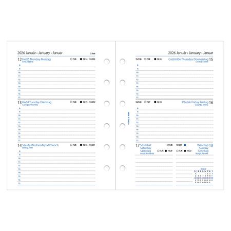 Kalendárium betét, tervező, Filofaxhoz, pocket méret, heti, 1 hét/2 oldal, 2026