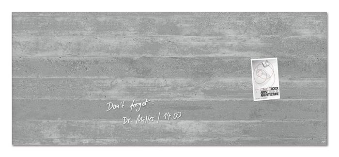 Mágneses üvegtábla, 130x55 cm, SIGEL "Artverum® ", beton mintázat