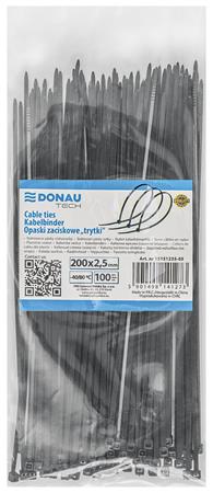 Kábelkötegelő, gyorskötöző, 2,5x200mm, DONAU "Tech", fekete